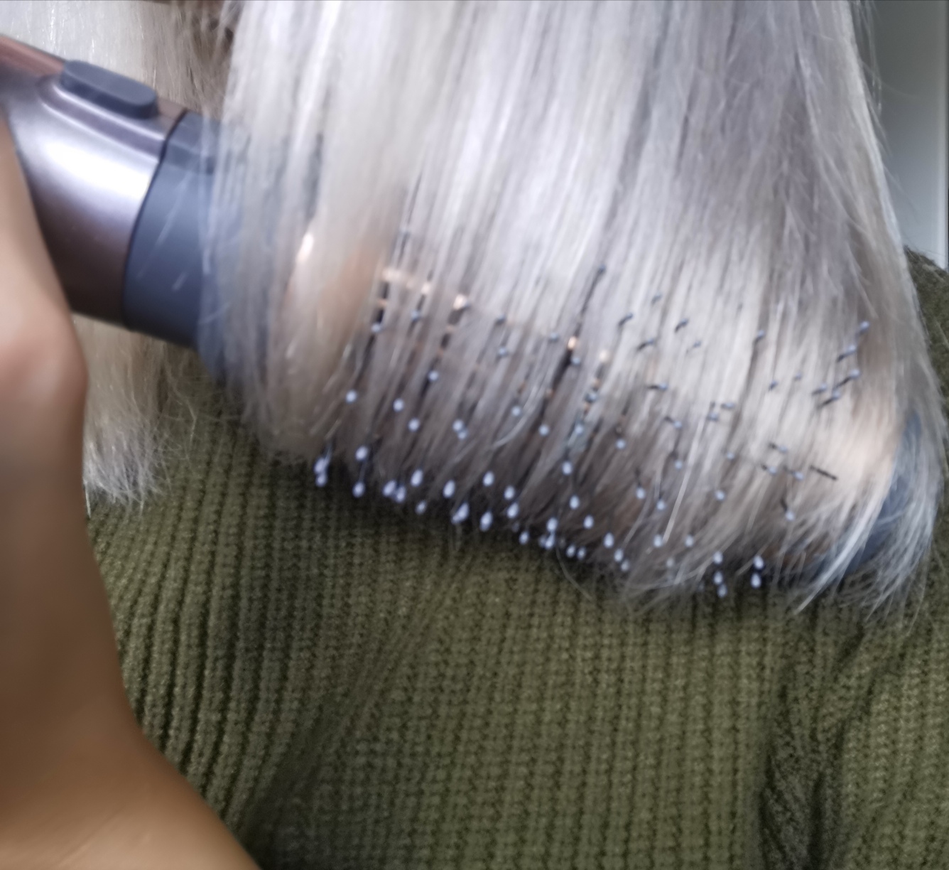 Vervolgens kies je welk opzetstuk je wilt gebruiken. Ons favoriete opzetstuk hebben wij al bevestigd aan de föhnborstel op de foto hierboven. Dit opzetstuk heeft fijne pinnetjes waardoor je het haar direct polijst en ontklit tijdens het föhnen. Er zitten verschillende standen op de föhn (koude lucht & warme lucht), waarmee je zelf  kunt bepalen met welke stand je jouw haren in model wilt brengen.
