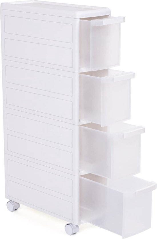 Smal Keukenrek of Opbergrek 4 laags op Wieltjes smalle Keuken Kast Keukentrolley met Wielen
