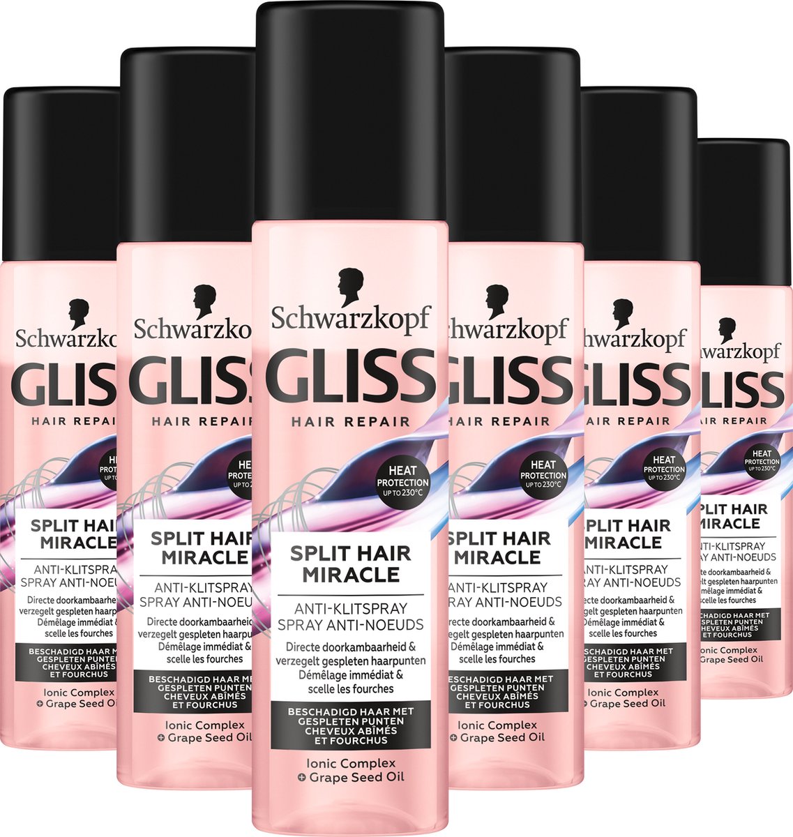 Gliss Split Hair Miracle Anti Klit Spray Haarverzorging Leave-in-Conditioner Voordeelverpakking 6 x 200 ml
