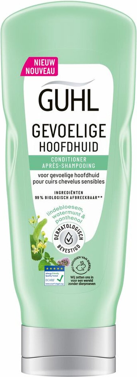 De Guhl Gevoelige Hoofdhuid conditioner is speciaal ontwikkeld voor mensen met een droge en gevoelige hoofdhuid. Deze conditioner biedt het haar niet alleen een buitengewoon milde verzorging, maar zorgt ook voor intensieve hydratatie. Met zijn unieke formule zorgt deze conditioner ervoor dat het haar weer soepel en makkelijk doorkambaar wordt. Geen gedoe meer met klitten en gespleten haarpunten! Daarnaast heeft deze conditioner een verfrissende geur die je zintuigen zal prikkelen en je een heerlijk fris gevoel zal geven. De Guhl Gevoelige Hoofdhuid conditioner is dermatologisch getest en geschikt voor dagelijks gebruik. Breng de conditioner aan op nat haar, laat het een paar minuten intrekken en spoel het daarna grondig uit. Geniet van het gevoel van zijdezacht haar en een gezonde hoofdhuid, dankzij de milde en hydraterende eigenschappen van deze fantastische conditioner.