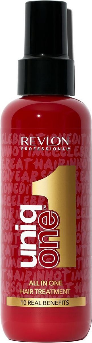 De Uniq One All In One Treatment Special Edition 150 ml is een revolutionair haarproduct dat 10 voordelen biedt voor gezond haar in slechts een oogwenk. Ter ere van het 10-jarig jubileum van de Uniq One lijn is er nu een speciale limited edition beschikbaar. Deze limited edition heeft een unieke geur die verschilt van de klassieke versie. Geniet van de heerlijke topnoten van Appel en Hyacint, gecombineerd met de basisnoten van kokos en vanille. Naast de onweerstaanbare geur, biedt deze limited edition treatment dezelfde geweldige voordelen als de originele versie. Het herstelt droog en beschadigd haar, versterkt het en vermindert breuk. Dit product doet precies wat het belooft en biedt een veelzijdige verzorging voor je haar. Of je nu last hebt van pluizig haar, moeilijk te stylen lokken of een gebrek aan glans, deze All In One Treatment zorgt voor de perfecte oplossing. Daarnaast heeft deze limited edition een prachtige verpakking die perfect past bij het feestelijke thema van het 10-jarig jubileum. Geef jezelf of een geliefde de ultieme haarverzorging met deze Uniq One All In One Treatment Special Edition 150 ml. Ervaar de luxe van een salonbehandeling in het comfort van je eigen huis en geniet van gezond, glanzend en prachtig haar.